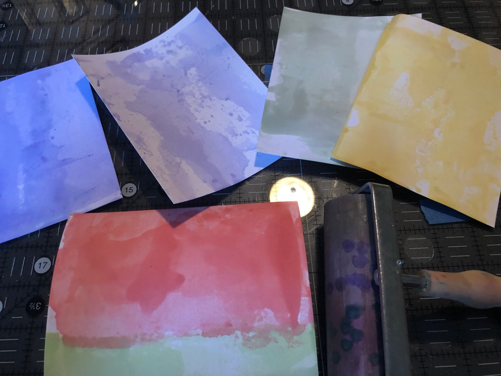 I just finished the Altenew’s Academy’s Irresistible Inking Techniques class. This class had lots of cool ideas, so for the first part of my project I went digging in my craft stash and found my old brayer. I took my ink cube and put in on my surface and added water, then rolled the brayer through it and rolled it onto paper.
