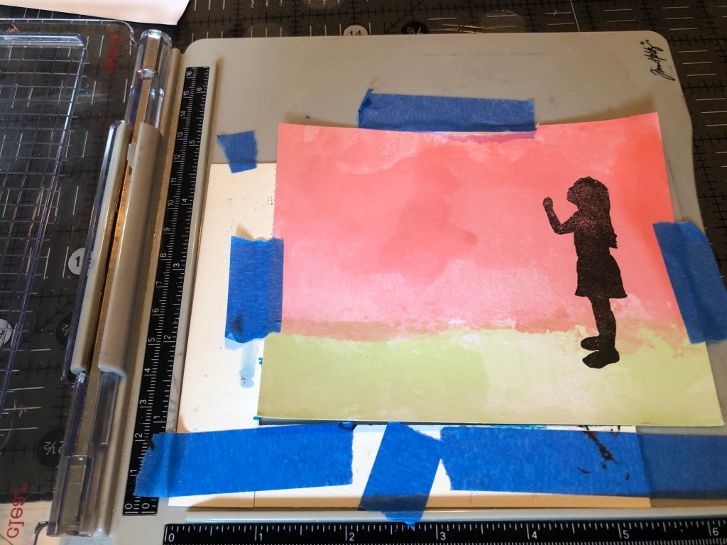 I chose to use my Tim Holtz platform (I have the travel one), and I decided to use the direct stamping technique.