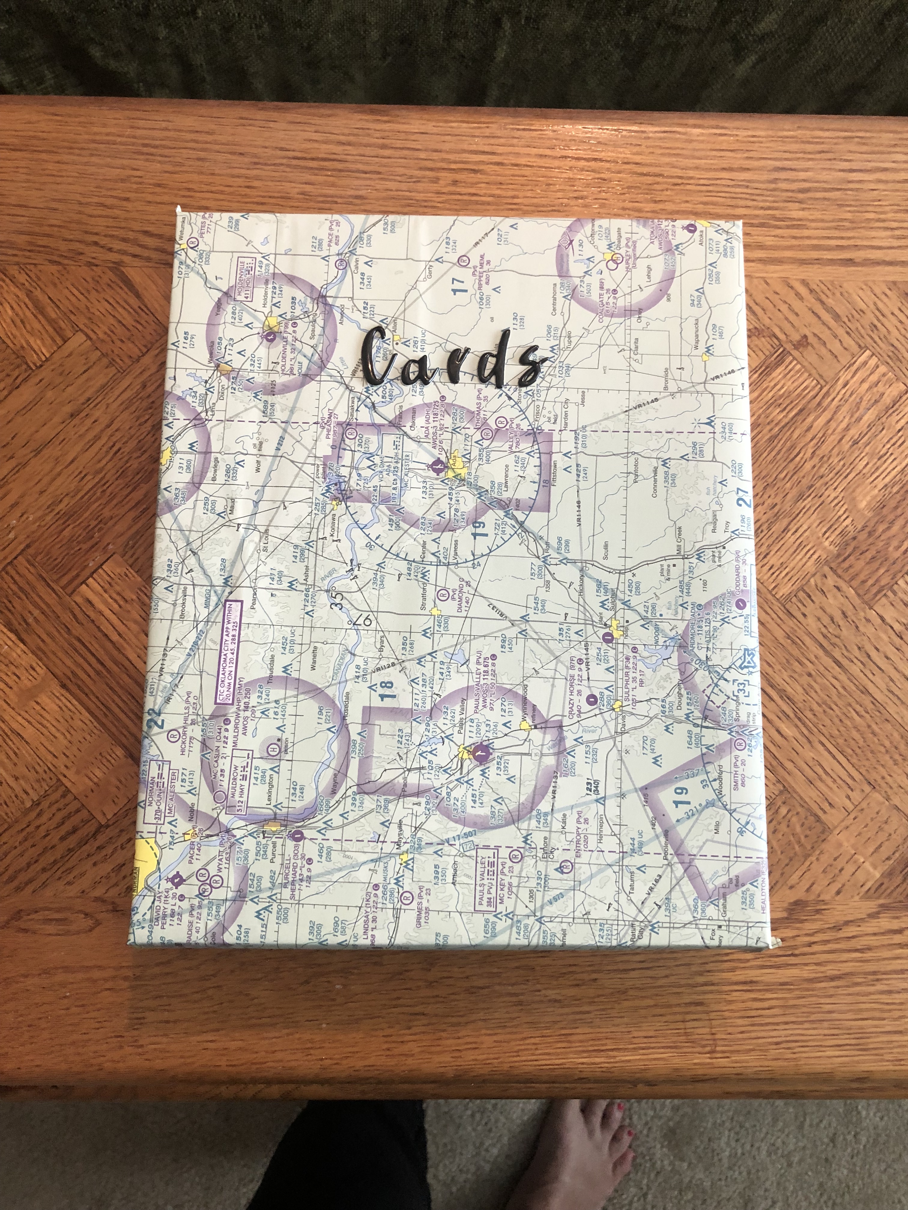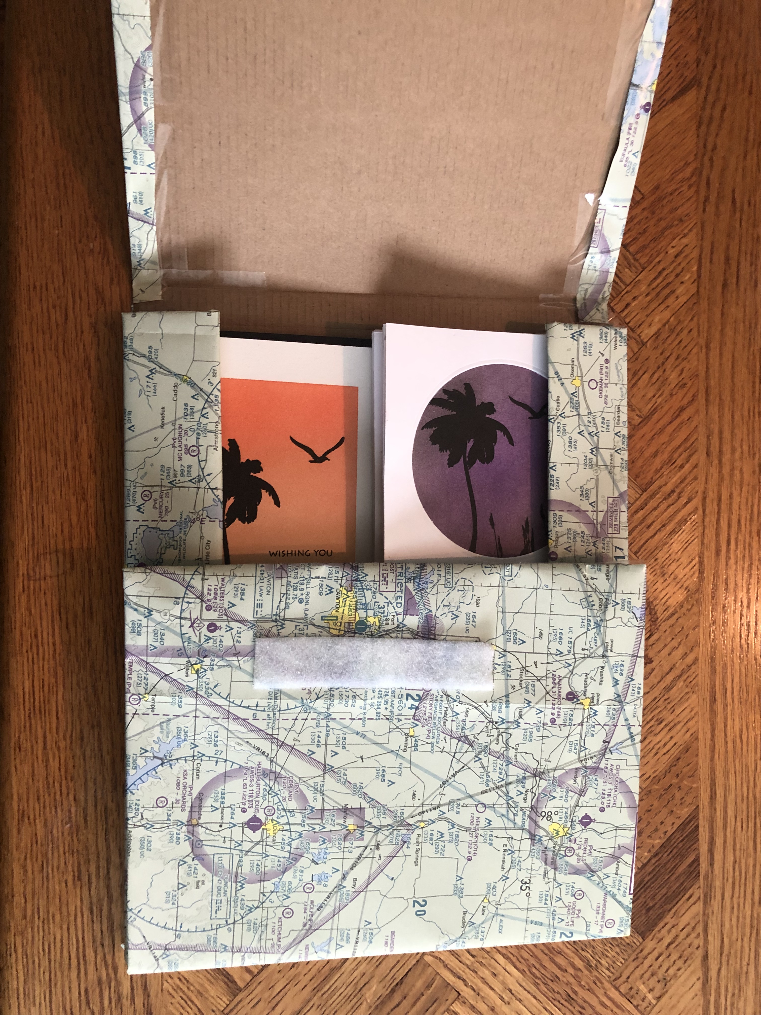 For my packaging, I decided to use a box and cover it with an airplane map. This is a bit of a running joke with our family. My husband is a pilot, so when our daughter was growing up we always had plenty of maps that had expired and these make great gift wrap. I would send my daughter off to her friends birthday parties and everyone would say we know who this is from because we always used them. It just makes me smile and brings back good memories!