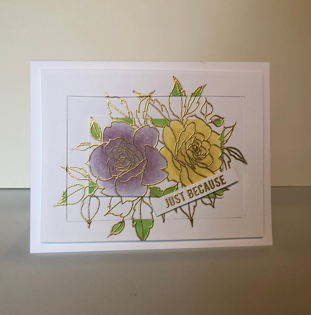 I made a classic note card. I will put the greeting inside later. I love the shine of this card!
