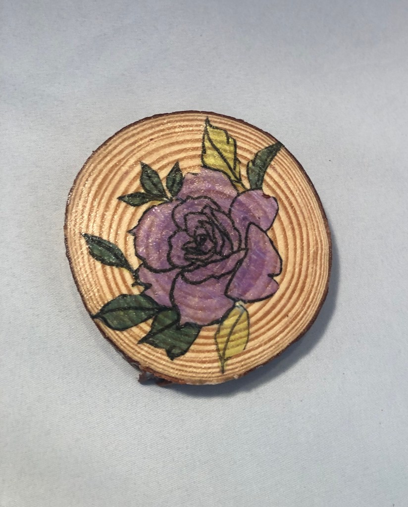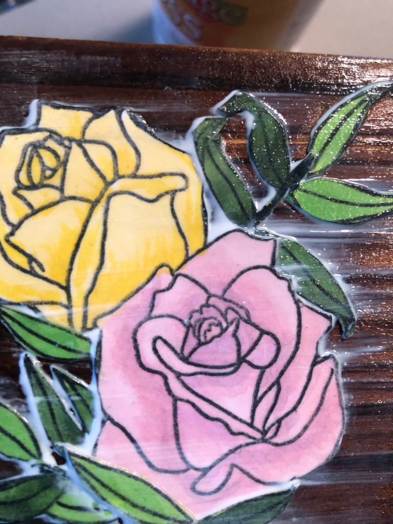 I bought these wood pieces a while ago and they were sitting in my craft closet. As I began the project, I had a colored image left from making the candle and I decided to try making a coaster. They were a good way to round out the box. I loved digging in my craft closet and fiquring out new ways to used things I already have. It helps that I have my own balloon decor business and have lot of supplies!