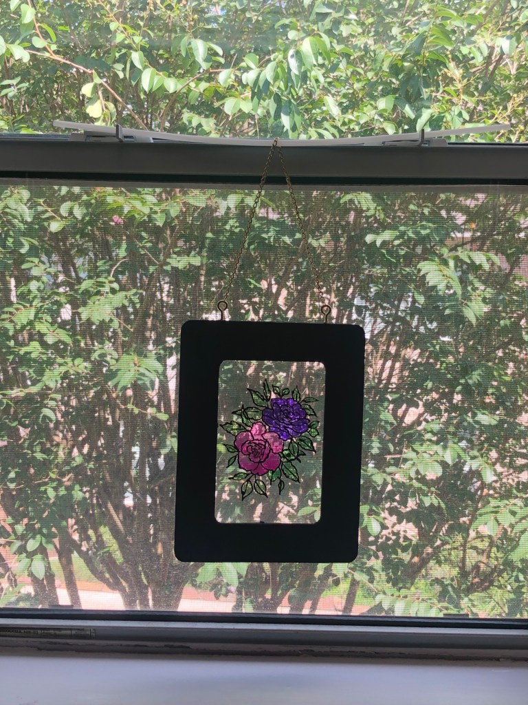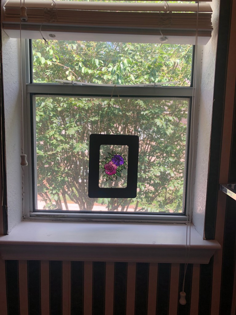Could not resist putting this in my bathroom window to see how pretty it looks! It’s even prettier in person!