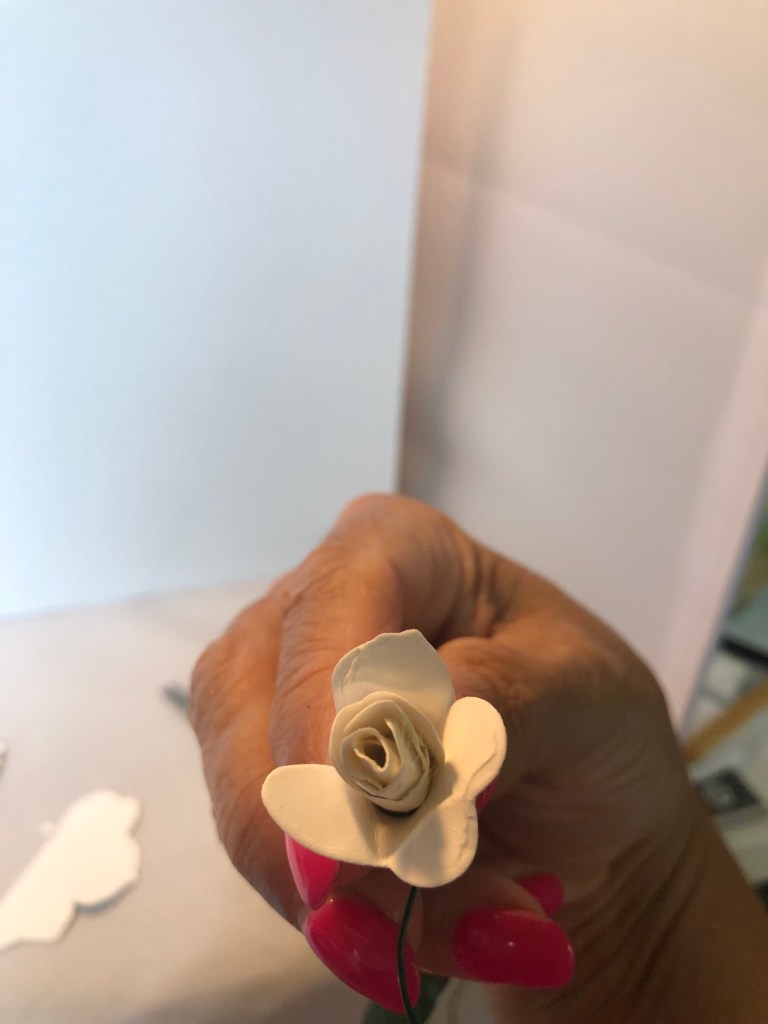 I used Altenew’s Virginia Rose Die set and cut out lots white pieces.