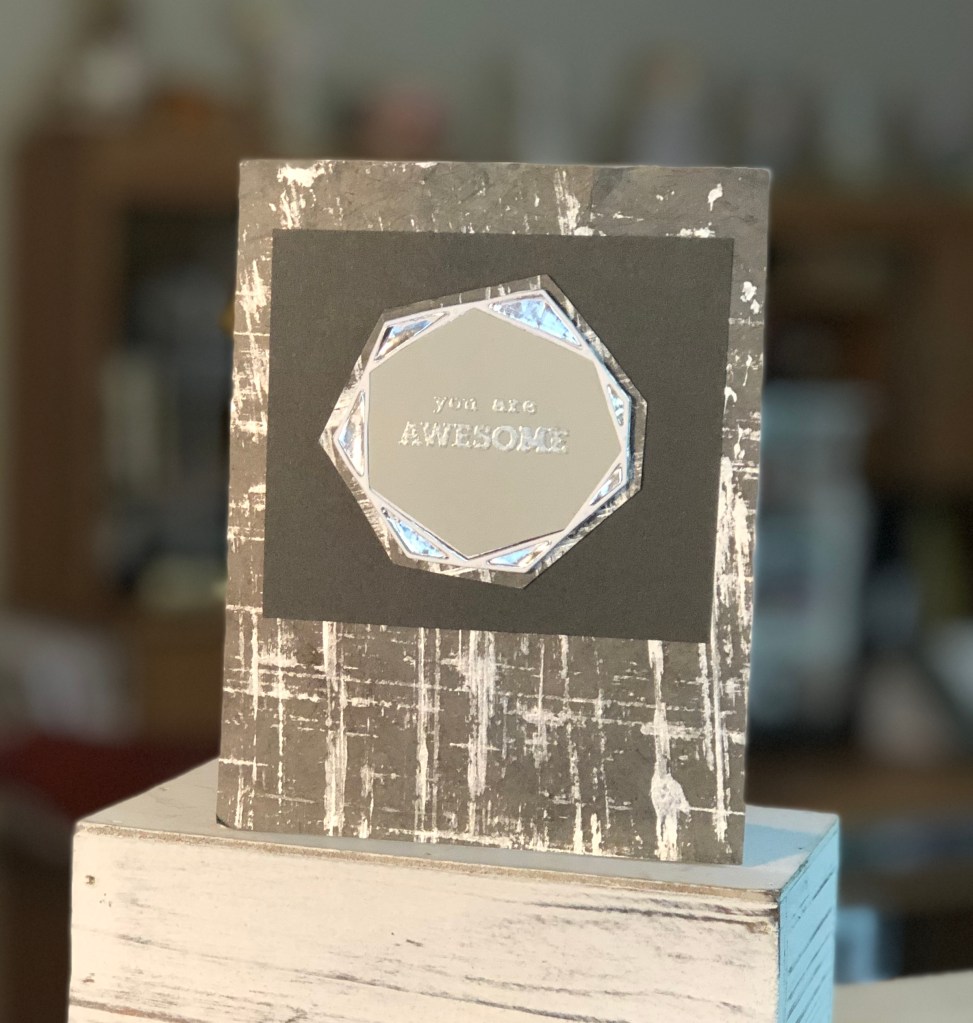 In the Let it shine class, I learned how to use metallic paper and embossing powder to add a little shine to my cards. Who doesn’t love a little sparkle?