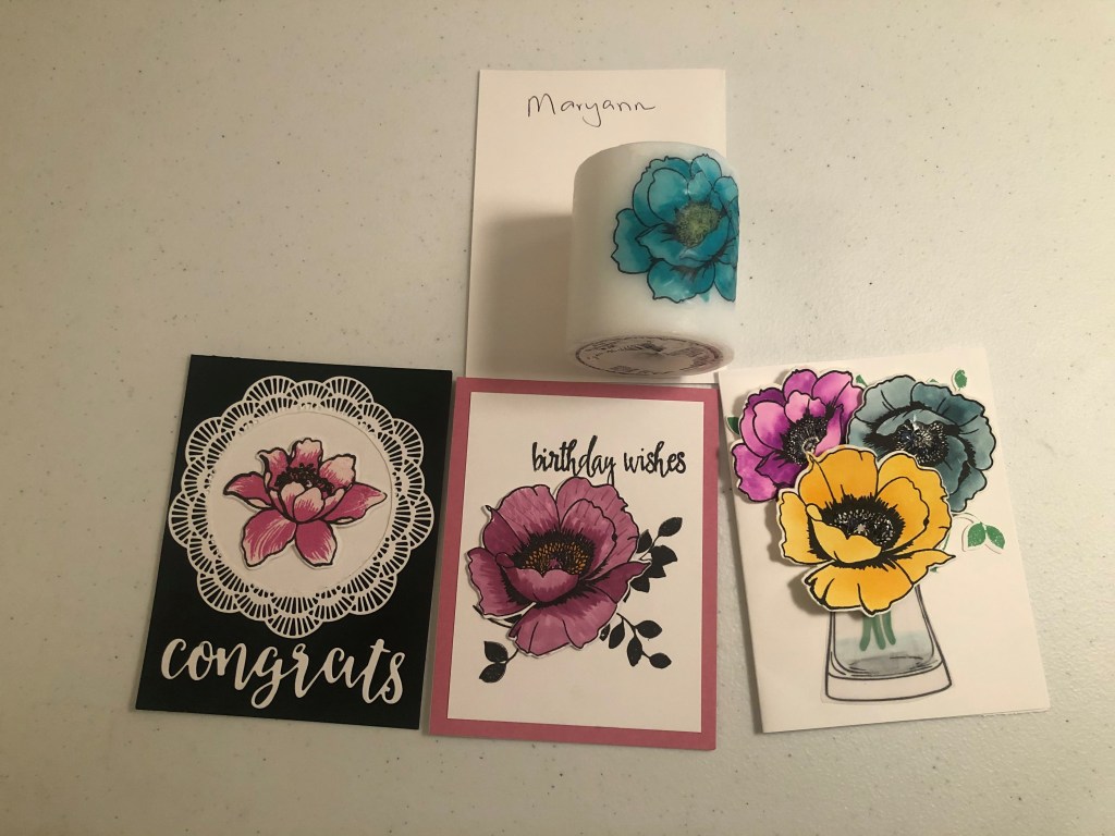 Overall I felt the class went well. I got nice feed back from my friends. The cutest comment was (I would not of believed I made this card but I was sitting here). I also got a few texts say how much they enjoyed the class. One friend wrote that the two hours passed so quickly! and you made me feel as though I was accomplished in a creative area. I really appreciate it.