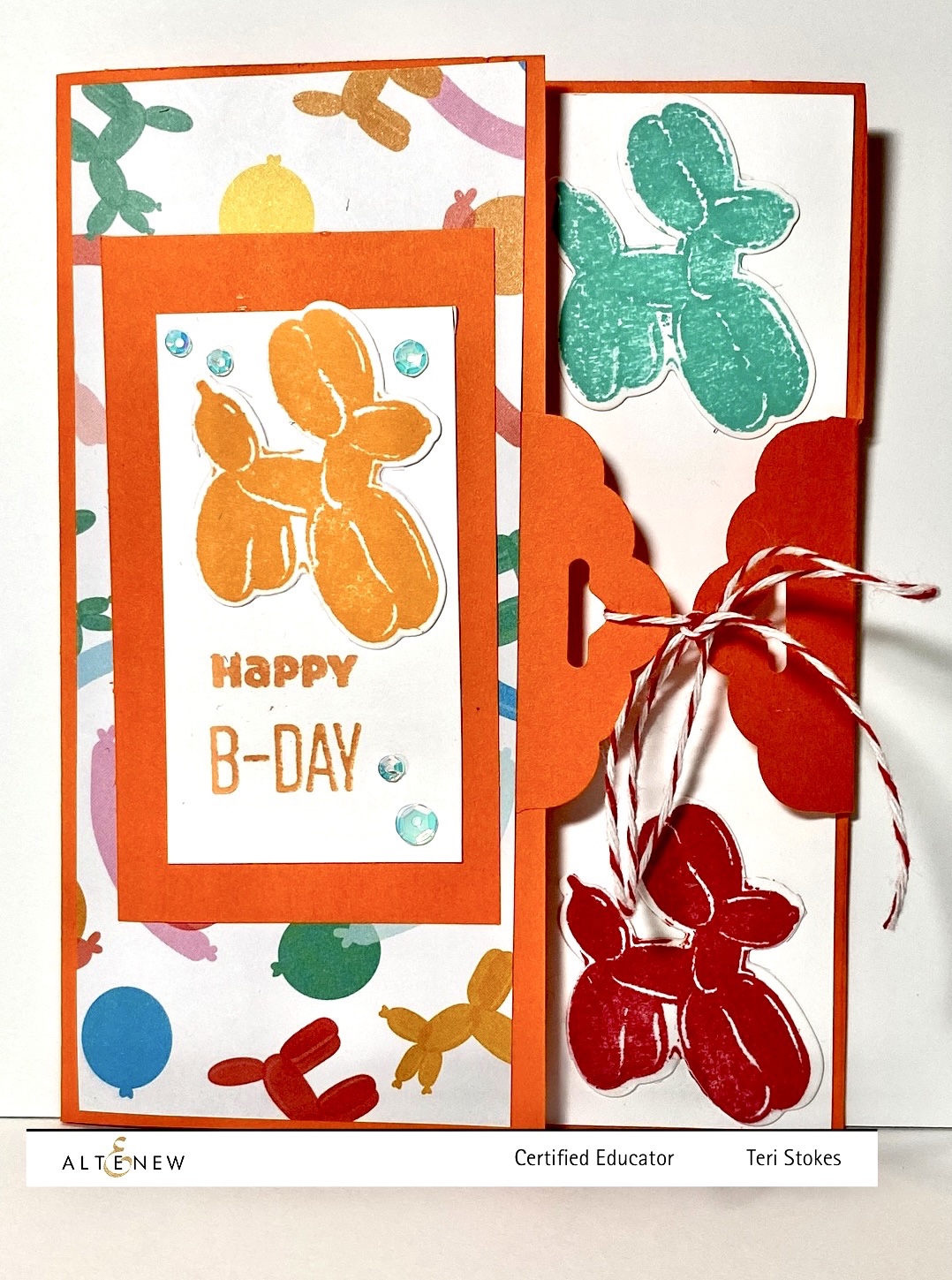 Hello from Seattle, WA. Your card is so perfect for a celebration! I am still smiling at the cuteness and fun, clever card assembly, and your first photo of the real balloons and the paper ones.